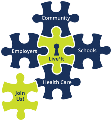 In early 2019, a group of health care entities, local employers and community organizations collaborated on a fresh approach to health and wellness. The idea was to improve health and lifespan by connecting hearts and minds. Live⁴lt asks a fundamental question, “What are you living for?” to inspire you to find your “It” (what gives you joy, hope, peace, strength, or meaning in life). In addition, it promotes four key concepts (representing L-I-V-E):